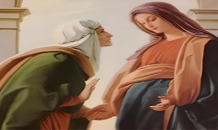 Beberapa waktu sesudah kedatangan Malaikat Gabriel, berangkatlah Maria dan bergegas menuju sebuah kota di Pegunungan Yehuda. Lalu ia masuk ke rumah Zakharia dan memberi salam kepada Elisabet. Ketika Elisabet mendengar salam Maria, melonjaklah anak yang di dalam rahimnya dan Elisabet pun penuh dengan Roh Kudus, lalu berseru dengan suara nyaring, “Diberkatilah engkau di antara semua perempuan dan diberkatilah buah rahimmu. Siapakah aku ini sampai ibu Tuhanku datang mengunjungi aku? Sebab pada saat salammu sampai di telingaku, anak yang di dalam rahimku melonjak kegirangan. Berbahagialah ia yang percaya bahwa apa yang dikatakan kepadanya dari Tuhan akan terlaksana.” Lalu kata Maria, “Jiwaku memuliakan Tuhan, dan hatiku bergembira karena Allah, Juruselamatku, sebab Ia telah memperhatikan kerendahan hamba-Nya. Mulai dari sekarang segala keturunan akan menyebut aku berbahagia, karena Yang Maha Kuasa telah melakukan perbuatan-perbuatan besar kepadaku dan kuduslah nama-Nya. Rahmat-Nya turun-temurun atas orang yang takut akan Dia. Ia memperlihatkan kuasa-Nya dengan perbuatan tangan-Nya dan mencerai-beraikan orang yang congkak hatinya. Ia menurunkan orang yang berkuasa dari takhtanya dan meninggikan orang yang rendah. Ia melimpahkan segala yang baik kepada orang yang lapar, dan menyuruh orang yang kaya pergi dengan tangan hampa. Ia menolong Israel, hamba-Nya, karena mengingat rahmat-Nya, seperti yang dijanjikan-Nya kepada nenek moyang kita, kepada Abraham dan keturunannya untuk selama-lamanya.” Maria tinggal kira-kira tiga bulan bersama dengan Elisabet, lalu pulang ke rumahnya.