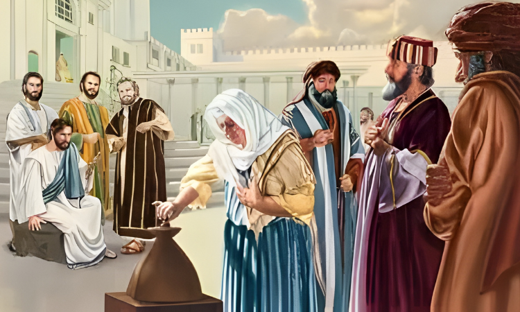 Yesus melihat seorang janda miskin memasukkan dua peser ke dalam peti derma.