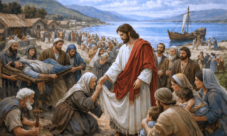 Dalam Injil, Yesus hadir langsung di tengah kerumunan orang yang sakit dan menderita. Mereka datang dengan harapan, dan Yesus menyambut mereka dengan kasih – menyembuhkan, memulihkan, dan membawa harapan baru (Mrk. 6:53–56). Kehadiran–Nya bukan untuk menghakimi, melainkan untuk menyentuh dan menghidupkan. Di mana pun Ia hadir, hidup berubah.